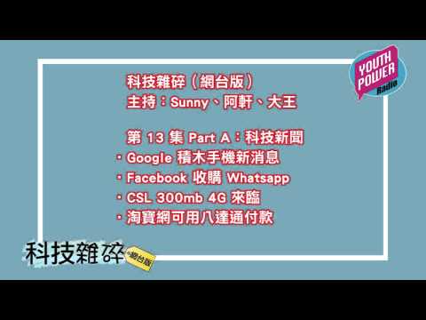 第 13 集 Part A:科技新聞 ‧Google 積木手機新消息 ‧Facebook 收購 Whatsapp ‧CSL 300mb 4G 來臨 ‧淘寶網可用八達通付款 主持:Sunny、阿軒、大...
