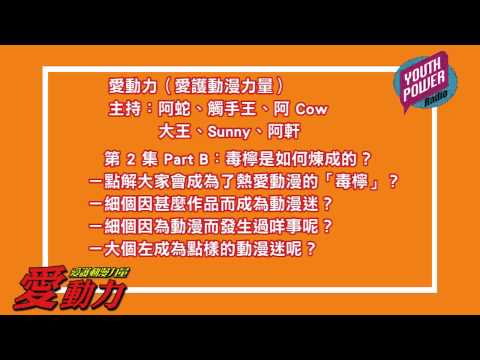 第 2 集 Part B:毒檸是如何煉成的? -點解大家會成為了熱愛動漫的「毒檸」? -細個因甚麼作品而成為動漫迷? -細個因為動漫而發生過咩事呢? -大個左成為點樣的動漫迷呢? 主持:阿蛇、觸手王...